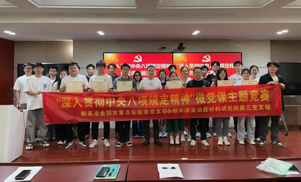 功能材料研究所第三党支部于岳麓山校区三一大楼409会议室举办了“深入贯彻中央八项规定精神”主题微党课竞赛活动,两支部全体党员(含中共预备党员)、入党积极分子出席活动。本次活动由罗行同志主持。活动开始前,罗行同志向大家简述了本次活动的比赛规则和比赛方式,并预祝本次活动取得圆满成功。9名参赛学...