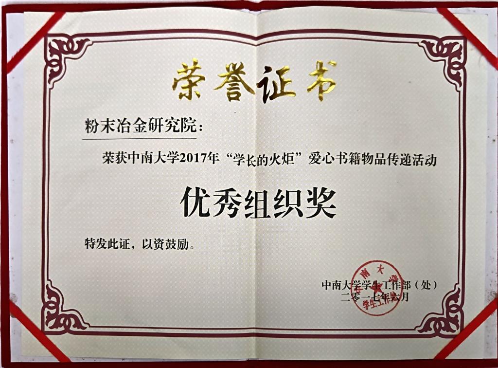 2017年“学长的火炬”爱心书籍物品传递活动优秀组织奖