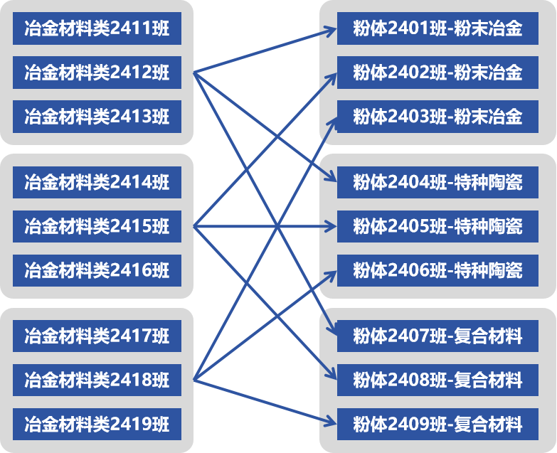 、特种陶瓷和复合材料三个方向,对第二学期分流到本专业的2024级在读本科生(指标数236)同时分方向构建9个行政班级,通过开展特色化、精细化培养,提升学生在不同专业方向的专业素养和综合能力。