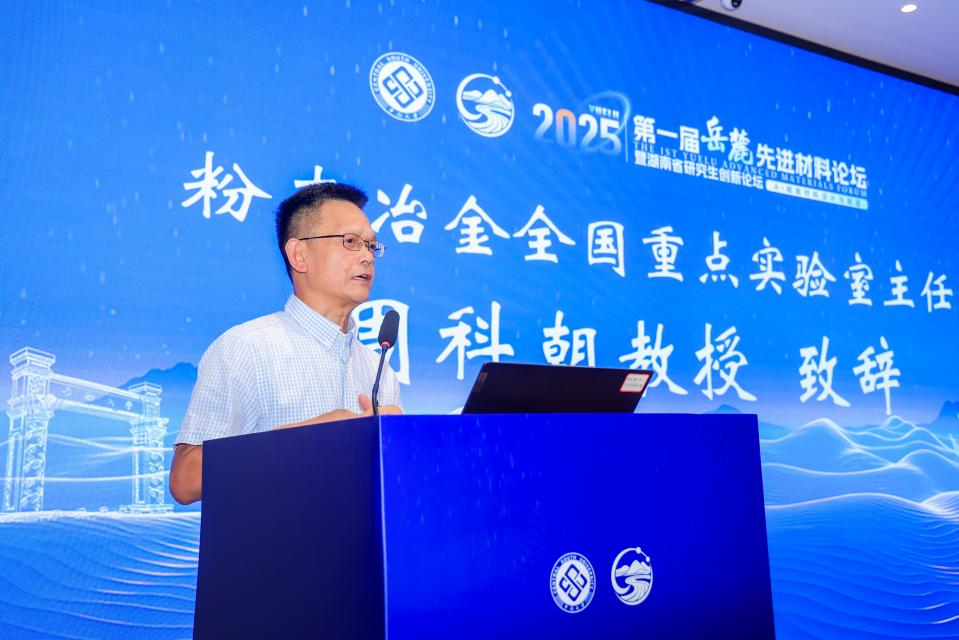 全国重点实验室主任周科朝教授作为主办方代表发表致辞。他向与会人员表示了热烈的欢迎,并着重指出当前AI技术的迅猛发展既为材料科学研究带来了新的机遇,也使该领域面临着诸多挑战。他期望本次论坛能够成为一个高质量交流与合作平台,有效促进AI技术与材料科学的深度融合,从而为材料科学的创新发展注入强大动力。
