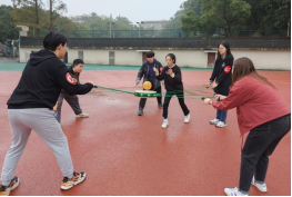最后的“同心击鼓”环节非常考验团队的协作能力,不少队伍在这一关遇到了困难,经过练习,大家很快掌握了这项游戏的诀窍,连续击球最多的队伍取得了39次的好成绩。