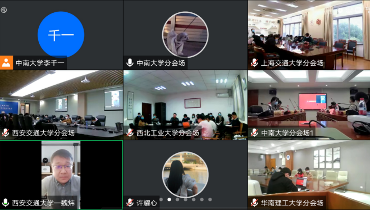 院长刘咏,上海交通大学材料科学与工程学院学生党建负责人许耀心,西安交通大学材料科学与工程学院党委副书记魏炜,西北工业大学材料学院党委副书记蔡利剑,华南理工大学化学与化工学院党委副书记刘才刚及五所高校11个研究生党支部的150余名党员参加了活动(表1)。活动分为二十大专题报告与二十大学习分享会两大部分,五个高校都设立了线下分会场。