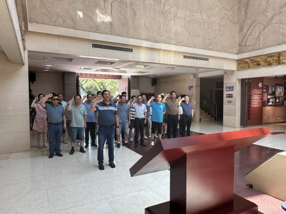 在湘南起义纪念馆,党员同志们认真聆听讲解员介绍湘南起义的历史背景、战斗过程,详细了解了由朱德、陈毅与中共湘南特委共同领导和组织发动起义的全过程,并通过一张张历史图片、一件件红色文物,真切地感受到了湘南起义中革命先辈们那种不怕牺牲、前仆后继的革命精神。最后,全体党员在大厅雕塑前重温入党誓词,深刻感悟党员初心使命,增强使命感和责任感。