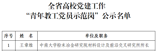 经各高校申报推荐,中共湖南省委教育工委组织资格审查、专家评审、评委会评议和工委会审定,全省高校党组织“对标争先”建设计划第四批项目评选结果于日前公示(原文链接://jyt.hunan.gov.cn/jyt/sjyt/xxgk/tzgg/202504/t20250401_1157532.html)。皇冠体育博彩 青年教师王章维获评第四批全省高校党建工作“青年教工党员示范岗”。