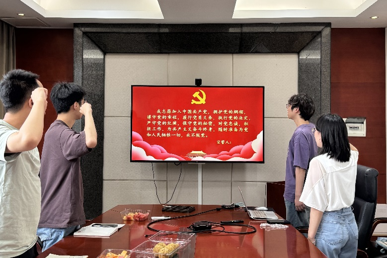 最后,在庄重的氛围中,与会师生整齐列队,重温入党誓词,再次铭记初心使命,深切体悟共产党员的责任担当。这场座谈会承载着毕业生与母校的深情对话,不同的青春梦想在此交汇碰撞,既为支部建设注入新动能,也为学子成长点亮明灯。陈立宝书记表示,愿每一位毕业生如大鹏展翅,抟风而上;在人生新程中,既能以鸿鹄之志开拓天地,又能以赤子之心守望初心。