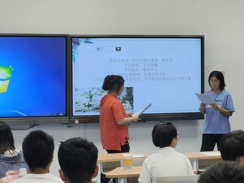 本次交流会还进行了志愿者注意事项培训,由青志协部门成员讲解有关志愿者活动的参与方式与志愿活动注意事项,为之后志愿活动的顺利开展做准备。最后进行了志愿者宣誓与签名环节,以庄重的宣誓仪式为活动画上了完美的句号。
