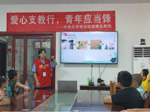 2023年7月6日,在粉冶院团委学生会的指导下,追锋支教团如期开展了在长沙市望城区英雄岭村第二天的支教活动。支教团通过多样化的支教形式传递爱心教育理念,在传授儿童相关知识的同时弘扬青年志愿者精神。