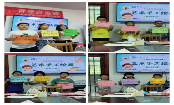 上午9时30分,支教团抵达支教活动室。在组织学生们依次有序地进入座位后正式开启了课程。支教团成员为学生们分发了事先准备好的素描纸等工具,为学生们开启了一堂别开生面的手工艺术课。支教团成员在鼓励孩子们积极构想,尽情创作的同时,又为在色彩、绘画、创意等各方面突出的同学颁发了奖状,极大地调动了学生们对于手工创意的兴趣及积极性,也使得学生们的特长在其中得到了不同程度的体现。学生们提交了充满创意与童真的作品,向我们展示了他们美丽的内心想法与期望。