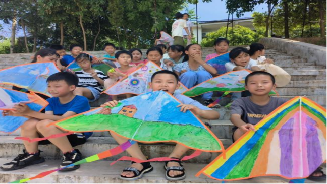 此外,团队还开展了风筝制作、衍纸艺术、非遗竹节人制作、彩色黏土和武术等活动,丰富了学生的课余生活,培养了学生的艺术和体育兴趣,并进行了环保教育,培养学生的环保意识。通过与抗美援朝老兵互动、与资深教师进行教育方面的学习交流和家访等方式,加深了团队队员对于乡村教育的了解,也帮助家长和孩子们进行更有效的沟通。