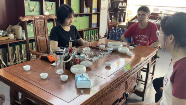 为了更好地了解壶瓶山茶的销售情况和市场需求,调研团队还前往了当地的售茶门店。在售茶门店内,团队成员与茶叶销售人员进行了深入交流。他们了解到,壶瓶山茶因其独特的口感和香气,深受消费者的喜爱。同时,他们也了解到茶叶销售面临的挑战和机遇,包括市场竞争、品牌建设等方面。团队成员积极与销售人员交流,探讨了如何更好地推广和销售壶瓶山茶的方法和策略。