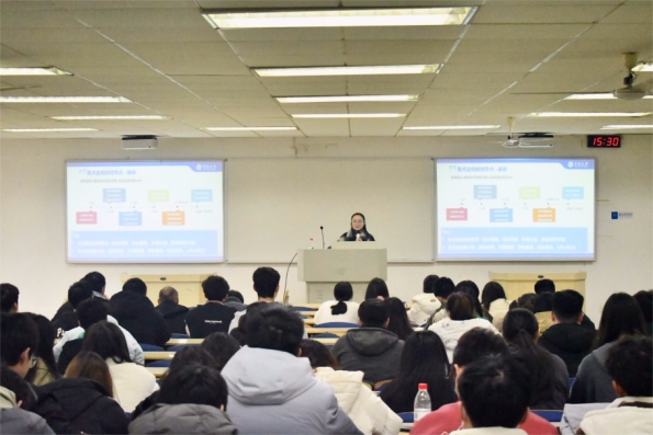其后,林钰杰老师对与会同学进行生涯规划指导。她结合2019级本科毕业生去向数据与多个实例为同学们提供参考,并根据时间轴,按段、按点指导不同毕业去向意愿的同学在相应时间段采取事迹行动。卓引留学李纪勇老师为同学们进行了留学的详细规划指导。他分需求、分地点,结合各国留学政策要求为同学们分享了关于出国留学的经验与建议。