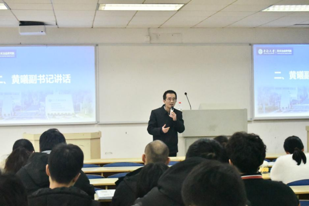 随后,黄曦副书记回忆起自己的本科学习生活经历,鼓励同学们无论走哪一条路都要努力奋斗、脚踏实地。他指出,同学们20出头的年纪,正值大好青春年华,深思熟虑很重要,响鼓不需要重敲,建议同学们走出舒适区,适当给自己一些压力。