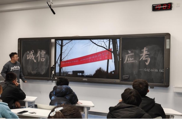 接着,班长组织同学们集体观看“皇冠博彩官网诚信应考宣传片”。他表示,距离期末考试还有二十天,同学们应将精力集中在复习备考上,切记不要妄想作弊取巧。