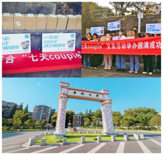 主办,商学院、地球科学与信息物理学院、材料科学与工程学院、资源加工与生物工程学院、自动化学院、计算机学院、公共管理学院协办的“七天Couple活动”在各院的共同努力下成功举行。本次活动覆盖湘雅、铁道、本部、南校四大校区,旨在帮助同学们建立新的关系、促进同学之间的沟通与合作,为大学生活注入新的活力。