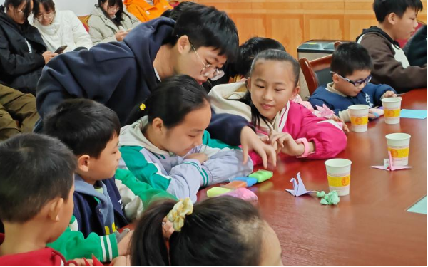 “星火重燃”支教队鼓励孩子们分享对劳动的认识,并向孩子们展示了长城、金字塔等人类劳动的杰出成果,让孩子们领悟到了劳动的重要性以及当今生活的来之不易。随后,“星火重燃”支教队组织孩子们折千纸鹤,在动手过程中让孩子们体会到劳动的快乐与收获的喜悦。