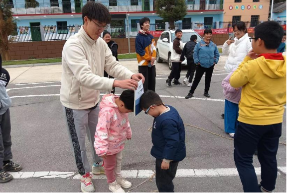 “金粉传情”支教队带领孩子们走出室内课堂,带领孩子们参与有趣的体育活动,比如双人头顶书绕绳走等小游戏。这种轻松活泼的形式,是启迪孩子真正热爱劳动、参与劳动的有效方式,让孩子们在活动中体会劳动快乐的同时感受劳动的朴实。