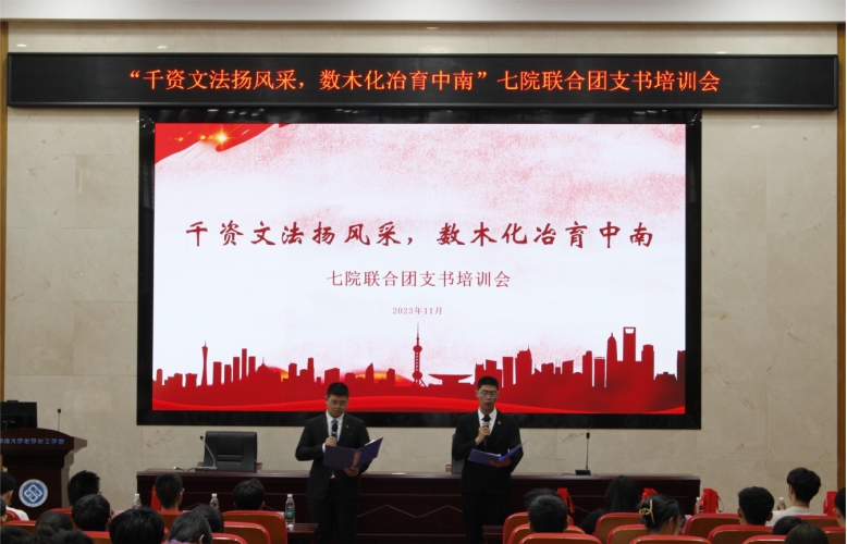、化学化工学院、资源与安全工程学院、数学与统计学院、土木工程学院举办的七院联合团支书培训会于新校区化工楼113时顺利举行。