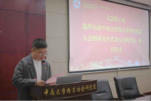 接着,学生会会主席齐杰琪和研究生会主席梁晴分别以“新机遇中求真务实,新学年里开拓创新”和“把握时代脉搏,奏响研会新乐章”为主题分别做工作报告,对这一年度学生会、研究生会取得的成果进行了总结,并就未来工作的开展方向做出汇报。两项报告经与会代表表决,均全票通过。