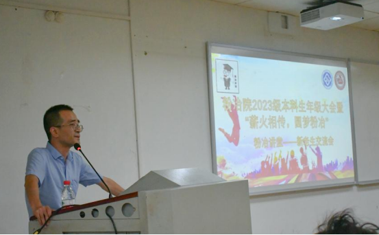 在校本部科教南楼402室举办2023级本科生年级大会暨“薪火相传,圆梦粉冶”新老生交流会。参与本次会议的有皇冠体育博彩