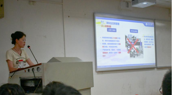 随后,2023级辅导员吴娅雯老师就粉冶院2023级本科生日常工作——从本科生日常管理纪律条例、评奖评优制度、资助与心理健康、学院常用信息与安全注意事项等五个方面进行讲述,同时勉励各位新生继续努力,珍惜大学生活。