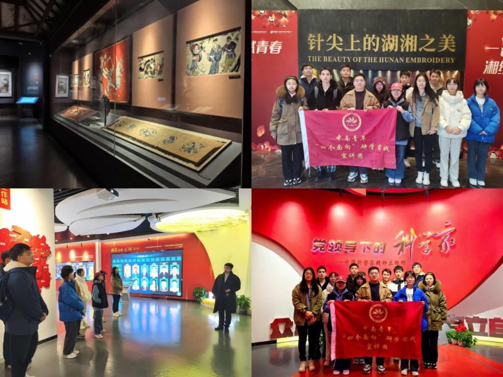 在湖南省湘绣博物馆,同学们深入领略了湘绣的独特魅力,通过馆内众多精美作品及详细介绍,对湘绣的起源、“鬅毛针”等高超工艺有了更加直观深刻的认识,切实感受到了这一传统工艺“绣花花生香,绣鸟可听声,绣虎会奔跑,绣人能传神”的精妙之处。随后,成员抵达中国科学家精神主题馆,讲解员详细讲述了新中国科技的启蒙与发展历程,以及新中国成立后众多科学家不畏艰难险阻、回国报效祖国的感人事迹和当代科学家取得的伟大成就。馆内先进的交互设备生动呈现了中国科学家的璀璨群像,让同学们深切体会到国家对科技人才的重视与关怀。