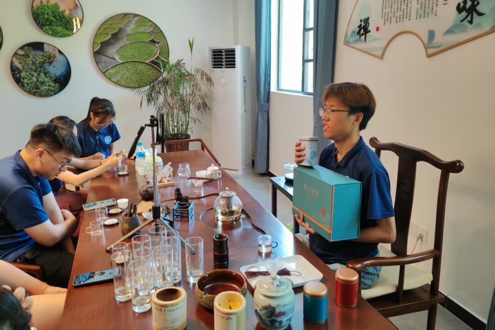 “材聚乡兴”实践团深入江西省九江市柴桑区岷山乡红峰村,实地考察庐山云雾茶的制作工艺,并运用新媒体直播带货助力茶产业推广,以青春力量服务乡村振兴。