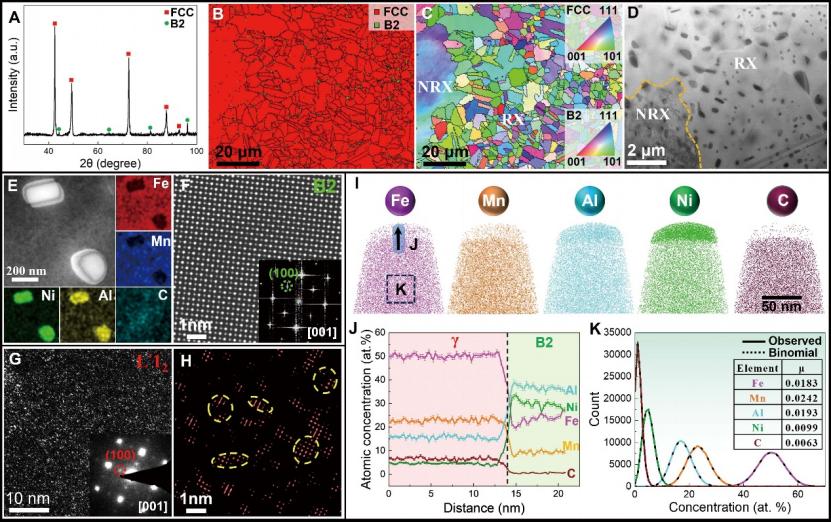 沉淀强化一直是提升金属材料强度的关键手段。析出相通过阻碍位错运动而产生显著的强化作用,长期以来,这种强化效果主要通过共格析出相的位错切过机制或非共格析出相的位错绕过机制来实现。然而,近期王章维教授和宋旼教授的研究成果却突破了这一传统理论框架,在低密度奥氏体高熵钢低温拉伸变形过程中,发现了一种位错切过硬脆B2相(通常被认为是不可剪切的金属间化合物)的强韧化新机制,为金属材料的强韧化开辟了新的道路。