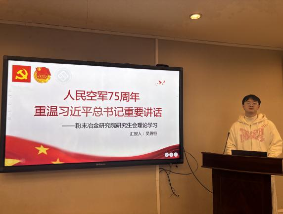 研究生会于三一大楼506举办了以“纪念人民空军75周年,重温习近平总书记重要讲话”为主题的理论学习活动。院研究生会主席团成员、各部门部长及副部长等20余名同学参与了本次活动。办公室副部长吴勇恒同学负责主持。