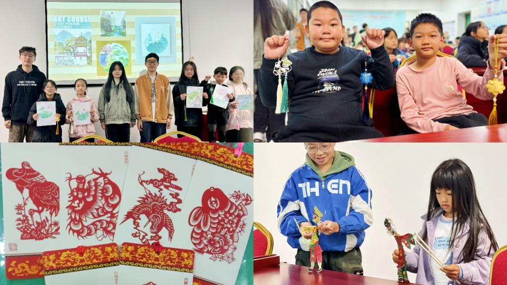 课堂伊始,四支小队各展所长,将湖湘文化的精髓巧妙融入生动有趣的课程中。小朋友们热情高涨,积极参与,与志愿者们进行互动。从秀美的山水到精致的湘绣,从栩栩如生的剪纸到灵动的皮影表演,湖湘文化的魅力深深吸引了这群纯真的孩子,在孩子们的积极参与下,课堂气氛热烈而有序。