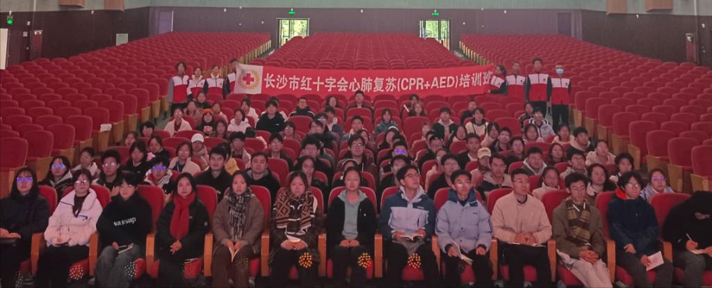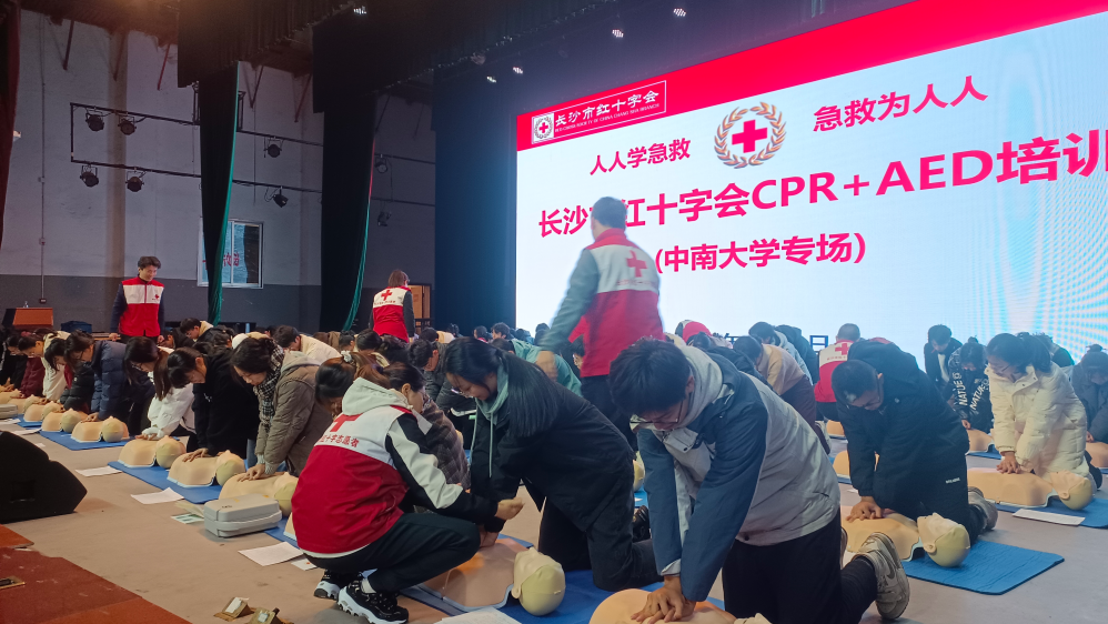 与法学院联合长沙市红十字会,于皇冠博彩官网礼堂举办了心肺复苏(CPR+AED)培训活动,共有全校百余名同学积极参加。
