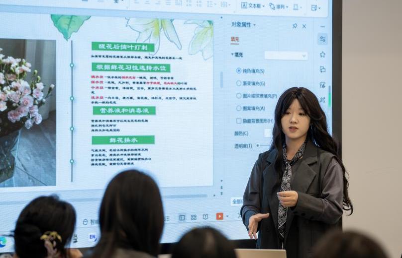 活动伊始,山有嘉卉花艺社的范思瑶同学向大家介绍了醒花、护花、养花方法,以及鲜花的种类和丰富多彩的插花样式。在学习的过程中,同学们对花卉的知识有了更深入的了解。