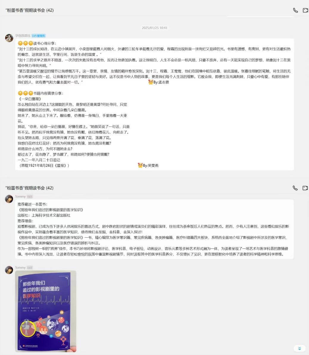 于1月22日至2月11日举办“粉墨书香”假期读书打卡活动。本次活动以书为媒,以读为径,引领辛勤学子在书香墨海中徜徉,在字里行间中汲取智慧,在思想碰撞中收获成长。