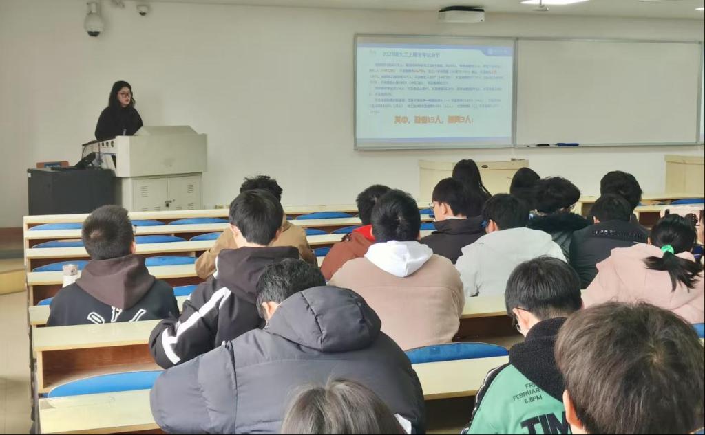 为完善2023级本科生生涯规划,帮助各位同学找到前进方向,吴老师还结合2024届本科毕业生去向数据与身边实例为同学们答疑解惑,提醒同学们考研并不是唯一的出路,应当认真考虑好自己的未来,切忌盲目跟风,做出最适合自己的选择。