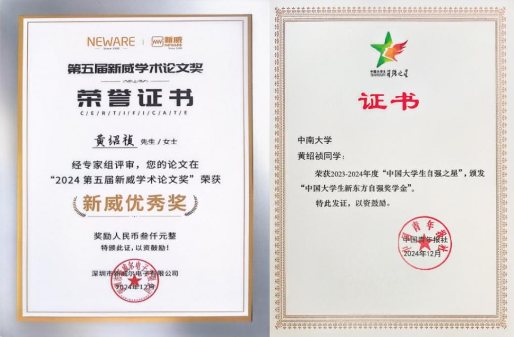 博士研究生黄绍祯同学荣获2023-2024年度“中国大学生自强之星”荣誉称号。
