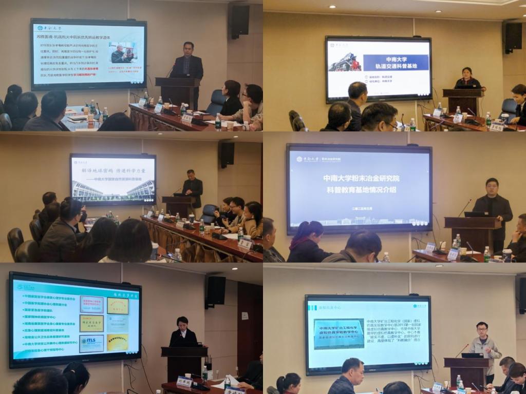 随后,6位科普基地负责人依次上台作基地概况介绍。人体形态学科技馆潘爱华教授以“教学、科研、科普”一体化推动医学科普;轨道交通科普基地黄启萍老师依托学科优势,融合科普教育与科技展示;地球科学创新中心刘井鹏教授运用虚拟现实技术构建矿冶工程仿真教学体系;应急心理救援科普基地唐婧琼老师致力于提升全社会应急救援意识;魅力化学湖南省科普基地李瑞旭博士以科教优势服务全民科学素养提升。