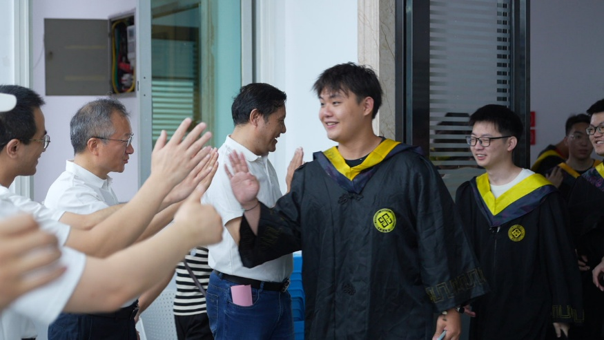 典礼启幕前,毕业生们依次与师长击掌致意。师长们以温暖有力的击掌传递祝福,用殷切寄语鼓舞学子。随着毕业生代表悠扬的歌声响起,典礼在庄严的奏唱国歌环节钟拉开序幕。随后,典礼进入表彰环节。院党委书记王德志郑重宣读了优秀毕业生名单,现场随即响起经久不息的掌声,向获奖学子致以最热烈的祝贺。