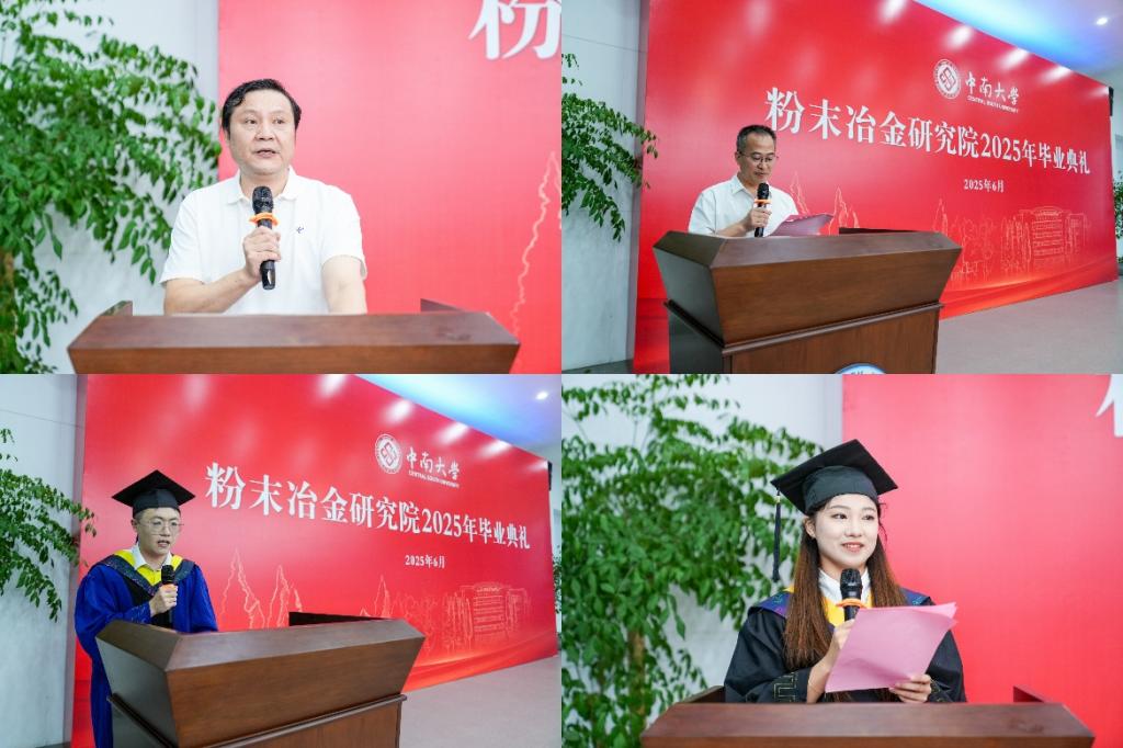 研究生代表张晓岩与本科生代表薛雨婷先后登台,带领全场重温了在粉冶院求学的珍贵时光。他们不仅分享了个人发展规划,更表达了对母校培育之恩的深深感激。家长代表徐运贵先生在致辞中,向粉冶院的领导老师们鞠躬致谢:“感谢您们用智慧与爱心,为孩子们插上追梦的翅膀。”他寄语毕业生们永葆求知初心,在人生新征程上勇攀高峰,用奋斗书写精彩人生。