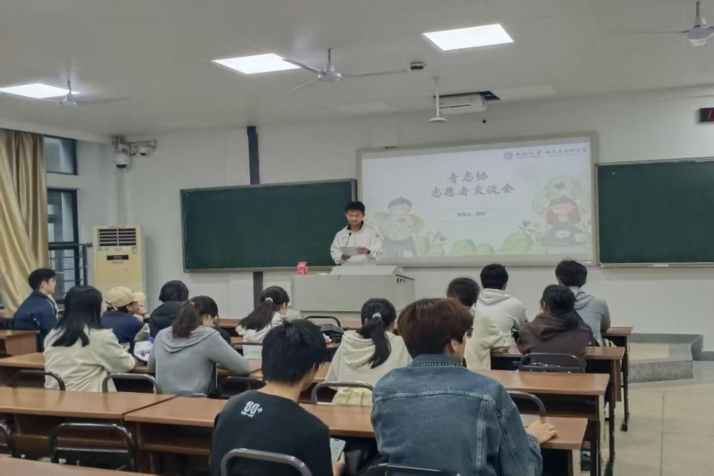分团委青年志愿者协会实践部在潇湘校区A座110室组织开展了新生志愿者交流会,会议由高阳同学主持。