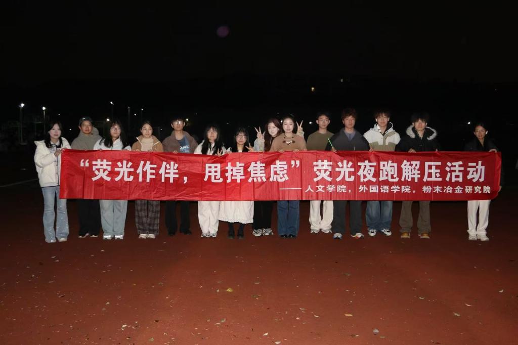 联合外国语学院、人文学院举办“荧光作伴,甩掉焦虑”夜跑解压活动,三院学子踊跃参与,在奔跑中释放压力、展现青春活力。