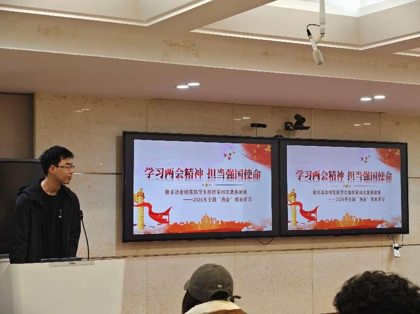 紧接着,王炳珺同学以“粉冶青年说”为话题引导大家展开讨论。其中,院团委组织部章婧发言表示,将会把本次学习成果转化为投身科技创新、服务国家发展的实际行动中,在“十五五”新征程中勇挑重担、挺膺担当。