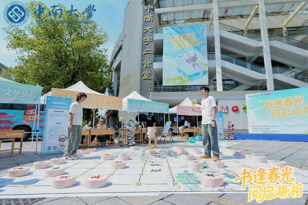 主会场上,多名“读书达人”站上领奖台,展示着中南学子的良好风貌。中华经典吟唱团以一首《沁园春·雪》为本届读书文化节拉开序幕。本次活动以“启源-铸韵-立魂-践行-升华-寻根-新生”为主线,设计了投壶雅戏、象棋对弈、先贤飞行棋、拼词成诗等十余项沉浸式互动游戏,让中南学子能够在集章闯关中走进湖湘经典,感悟湖湘书香。