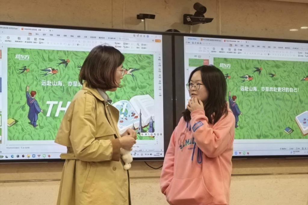 会议伊始,三位新东方讲师围绕不同升学路径,为同学们带来了各有侧重的专业指导。张美玉老师系统解读了新港澳及世界知名院校的申请政策与专业选择要点;方琳老师借助真实案例,拆解了包括G5在内的世界名校的录取逻辑与准备方案;李阳明老师则结合自身保研及指导经验,详细讲解了高校保研规则及加权成绩提升技巧。