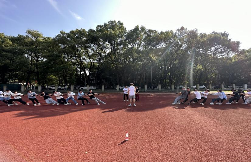 比赛开始前,本着公平、公正、公开的原则,在体育部工作人员的监督与组织下,双方队长猜拳决定拔河场地,队员们站在拔河场地上跃跃欲试,摩拳擦掌。